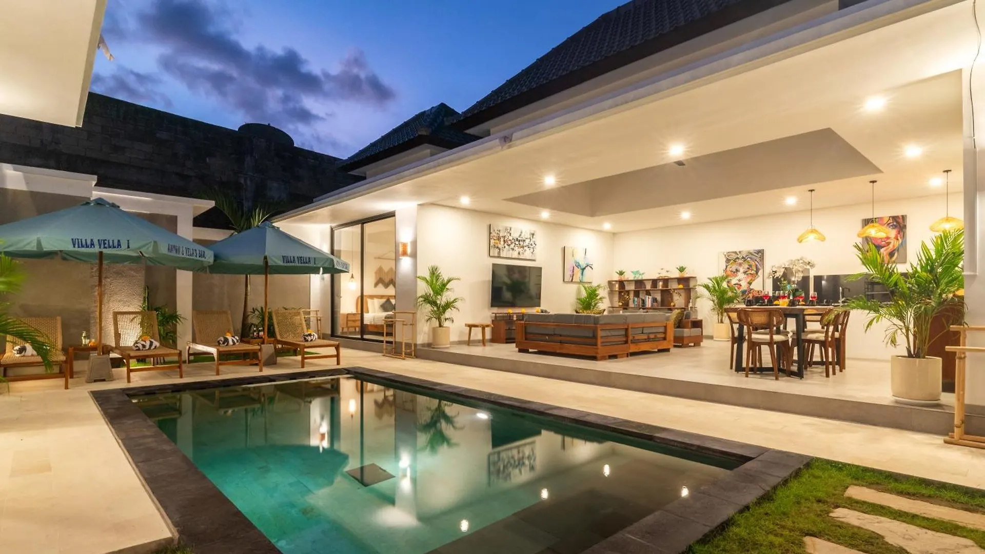 Gli ospiti della Villa Vela 1 - Brand new 3 bedroom villa possono utilizzare un angolo cottura attrezzato con una macchina per caffè e tè, un frigo e una vetreria per preparare i pasti a casa. Gli ospiti hanno la possibilità di cenare presso il ristorante The Caffeine Coffee Shop, a soli 150 metri. L'aeroporto Internazionale Ngurah Rai è posizionato a 5 km da questa villa.